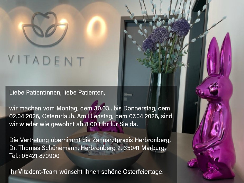 Der Beruf des Zahnarztes ist eine Berufung. Wer sich für ihn entscheidet, entscheidet sich dafür, Menschen zu helfen. Und das bedeutet: voll und ganz für sie da zu sein – mit aller Aufmerksamkeit, medizinischem Wissen und Verständnis für die jeweilige Aufgabe.Sie dürfen viel von uns erwarten. Einen offenen, ehrlichen Umgang und hohe zahnmedizinische Kompetenz. Und unser wichtigstes Anliegen, Ihnen jeden Besuch bei uns so angenehm wie möglich zu machen. Das beginnt schon mit der Terminabsprache: Wir nehmen uns dann Zeit für Sie, wenn Sie sie haben, und gehen gerne auf Ihre Terminwünsche ein.